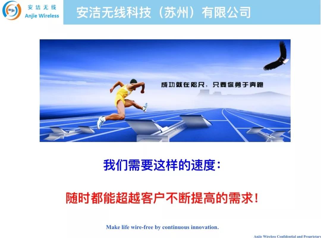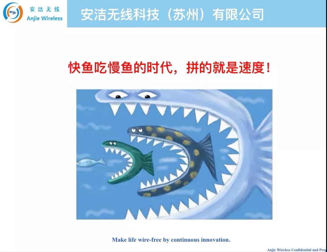 安洁无线较同行起步晚,但集团给我们提供了非常强大的配套资源,在这个“快鱼吃慢鱼”的时代,我们要打造超常的加速度,实现快速发展。